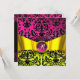 INVITATION RUBAN OR JAUNE FUCHSIA DAMASSE MONOGRAMME NOIR
