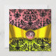 INVITATION RUBAN OR JAUNE ROSE NOIR DAMAS MONOGRAMME