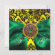 INVITATION RUBAN VERT OR JAUNE NOIR DAMAS MONOGRAMME