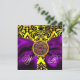 INVITATION RUBAN VIOLET OR JAUNE NOIR DAMAS MONOGRAMME
