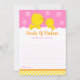 Invitation Rubber Ducky Jaune et rose Mots de sagesse