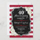 Invitation de fête d'anniversaire de mariage de 40 ans Ruby rouge. Élégante carte d'invitation rouge, noire et blanche avec faux argent scintillant. Caractéristiques rayures élégantes, police de caractères script et roses blanches. Parfait pour une célébration de 40 ans de mariage.