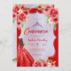 Invitation Ruby Rouge Floral Aquarelle Quinceanera