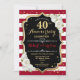 Invitation de fête d'anniversaire de mariage de 40 ans rubis rouge. Carte d'invitation élégante rouge, noire et blanche avec faux doré brillant. Caractéristiques rayures élégantes, police de caractères script et roses blanches. Parfait pour une célébration de 40 ans d'anniversaire de mariage.