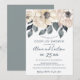 Invitation de douche couple moderne tendance avec belle grande crème d'ivoire et fleurs de dahlia clair avec gris foncé et sage peint à la main feuilles et feuillage, et avec un décontracté chic script de typographie manuscrite whimsical. +++++++++++ Convient pour toute saison jardin fleuri à thème aquarelle de style moderne boho rustique ou fiançailles romantique, après mariage ou tout autre couple fêtes et célébrations.