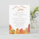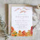 Invitations avec ce faire-part de mariage d'automne rustique. Il présente des illustrations aquarelle d'un paysage de chute avec des orangers, des verts et des rouges. Personnalisez en ajoutant les noms, la date, l'heure et d'autres détails. Cette invitation à la forêt d'automne est parfaite pour les mariages de automne.