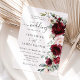 This Wedding invitation card showcases a stunning watercolor floral arrangement in rich burgundy and delicate blush pink hues. Perfectly designed to match our Rustic Blush wedding collection, you can easily personalize it with your details. Simply press the "Edit Using Design Tools" button to customize the text style and placement. Don't forget to explore our coordinating items available in-store for a cohesive and stylish look. (c) The Happy Cat Studio