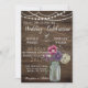 Rustique Pays Automne Hiver Automne Mariage Mason Jar Il s'agit d'un grand design mariage avec un arrière - plan rustique avec bocal de mason et des accents de campagne. Pour plus de personnalisation, cliquez sur le bouton "Customiser" et utilisez notre outil de conception pour modifier ce modèle. Tous les styles de texte, couleurs, tailles peuvent être modifiés selon vos besoins. Si vous avez besoin d'une personnalisation ou d'une correspondance, veuillez me contacter à l'adresse gina@myweddingbliss.net. Je réponds à tous mes courriels et je suis heureux de répondre à votre demande. Vous pouvez également visiter ma boutique pour plus de designs : www.zazzle.com/my_wedding_bliss