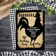 Style rustique ferme avec aspect vieilli, déchirée en papier et chèques de buffle noir et blanc comme arrière - plans pour une silhouette de coq noir "BARBEQUE" Design de fête d'anniversaire par Holiday Hearts Designs (droits réservés).