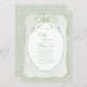 Sage green rustic polkadots with soft green overlay frame and topped off with a hand drawn green watercolor ribbon and bow. We’ve used lovely fonts and scripts done in coordinating colors baby shower invite.
