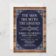 C'Est L'Homme Le Mythe La LÉGENDE ! Sa vie a été une aventure extraordinaire et il est temps de célébrer son héritage et lui. Ce papier bleu marine texturé à base de bois rustique avec un type blanc et des angles rayés blancs surprise 100e anniversaire invitation est parfait pour inviter des amis et la famille à se joindre à vous pour honorer et célébrer cet incroyable anniversaire de jalon! Pour voir vos invitations uniques, cliquez sur "Personnalisez ce Modèle" et entrez vos informations. C'est super facile !