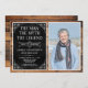 C'Est L'Homme Le Mythe La LÉGENDE ! Sa vie a été une aventure extraordinaire et il est temps de célébrer son héritage et lui. Cette grange naturelle papier noir texturé avec type blanc et blanc rayé coin surprise 65e anniversaire invitation avec l'invité de la photo d'honneur est parfait pour inviter amis et famille à se joindre à vous pour honorer et célébrer cet anniversaire fabuleux! Pour voir vos invitations uniques, cliquez sur "Personnalisez ce Modèle" et entrez vos informations et téléchargez une photo préférée. C'est super facile !