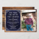 C'Est L'Homme Le Mythe La LÉGENDE ! Sa vie a été une aventure extraordinaire et il est temps de célébrer son héritage et lui. Cette grange naturelle papier bleu marine texturé avec type blanc et blanc rayé coin surprise 90e anniversaire invitation avec l'invité de la photo d'honneur est parfait pour inviter amis et famille à se joindre à vous pour honorer et célébrer cet anniversaire fabuleux! Pour voir vos invitations uniques, cliquez sur "Personnalisez ce Modèle" et entrez vos informations et téléchargez une photo préférée. C'est super facile !