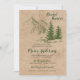 Rustic Mountain Bridal Shower Invitation présente un arrière - plan kraft brun. Une chaîne de montagnes verdoyante et des arbres se trouvent en haut de cette invitation et des polices en vert dans des polices amusantes et de style tout au long de l'invitation. Il s'agit d'une faire-part de mariage rustique de plein air ou de destination. Vous trouverez des articles de papeterie et des produits correspondants pour cet ensemble dans notre magasin.
