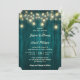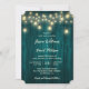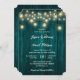 Invitation turquoise de mariage campagnard rustique avec des lampes à cordes contre un arrière - plan en bois de grange. Un design de carte parfait pour inviter vos invités à votre mariage turquoise sur le thème de la campagne. Éléments correspondants disponibles.