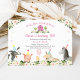 Cette mignonne invitation à l'anniversaire comprend des animaux de ferme aquarellés aux accents floraux roses, des confettis et une bordure en vichy rose.