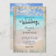 Ce mariage de plage rustique présente un magnifique paysage marin avec des vagues de l'océan qui roulent sur le sable, encadré de bois rustique, et décoré au sommet avec des lampes à cordes. Ces invitations de mariage sont parfaites pour les mariages de destination, ainsi que tous les mariages à thème de la plage et du littoral.