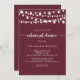 Cette cordes rustique illumine l'invitation à dîner de répétition bordeaux est parfait pour un événement simple. Le design est orné de superbes lampes à cordes peintes à la main dans un arrière - plan bordeaux.