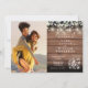 Un faire-part de mariage élégant avec votre photo spéciale et de jolis feuilles de sauge et lilas, des lampes à cordes, des jarres de maçon et vos détails mariages ensemble dans un texte élégant sur un arrière - plan de bois rustique. Conçu par Thisisnotme©