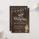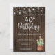 Rustic String Lights Succulent 40e anniversaire de fête Invitation avec des cordes festives de lumières et un mignon sac en pots de succulents et de cactus sur un arrière - plan rustique en bois. Ajoutez facilement vos détails pour une invitation amusante et personnalisée. Le texte est modifiable pour n'importe quelle année : 21ème, 30ème, 50ème, 90ème - allez-y ! Idéal pour des évènements quel que soit le sexe ou l'âge !