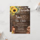 Gather your people with this bright and bold rustic western sunflower Save the Date wedding card! Featuring vibrant watercolor sunflowers, delicate string lights, cowboy boots, and a classic cowboy hat on a rich warm dark wood background. A cheerful and spirited design that perfectly blends country sunshine with western charm — ideal for summer and fall country weddings, ranch ceremonies, and outdoor barn celebrations!