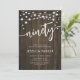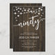 Invitation de fête du 90e anniversaire. Design rustique avec motif en bois brun foncé. Carte invitation classique avec lumières à cordes et police de script. Parfait pour une célébration anniversaire du quatre-vingt-dixième siècle. Personnalisez avec vos propres détails. Peut être customisé pour n'importe quel âge ! Invitations Zazzle imprimées ou téléchargement instantané modèle imprimable numérique.