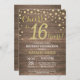 Invitation du 16e anniversaire avec Arrière - plan diamant en bois rustique et Parties scintillant d'or. Country Vintage Retro. Confetti d'or. Anniversaire enfant. Enfant ou Ado adolescente Anniversaire de la jeune fille. Pour plus de personnalisation, cliquez sur le bouton "Customiser" et utilisez notre outil de conception pour modifier ce modèle.
