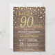 90e anniversaire Invitation avec Rustic Wood et Gold Parties scintillant Arrière - plan diamant. Country Vintage Retro. Confetti d'or. Anniversaire adulte. Hommes ou Femmes Anniversaire. Pour plus de personnalisation, cliquez sur le bouton "Customiser" et utilisez notre outil de conception pour modifier ce modèle.
