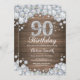 Rustique 90ème anniversaire Invitation. Diamant de Rhinestone Argent. Arrière - plan rustique en bois. Country Vintage Retro. Élégant invitation de Bassorh Anniversaire. Anniversaire adulte. Femmes Anniversaire. Hommes Anniversaire. Pour plus de personnalisation, cliquez sur le bouton "Customiser" et utilisez notre outil de conception pour modifier ce modèle.