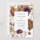 Ce faire-part de mariage floral rustique saisit l'essence de la saison d'automne romantique avec des teintes chaudes de marsala, violet, crème, ivoire, brun et rouille-orange. Le design captivant mêle parfaitement la beauté des fleurs d'automne et des feuillages délicats, mis en valeur par l'art des aquarelles, créant un souvenir vraiment fascinant pour votre journée spéciale. L'arrière de l'invitation mariage de automne affiche votre photo fiançailles verticale et plein sang. Ce design est en harmonie avec notre collection Rustique de mariages floraux d'automne.