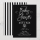 Invitation Rustique Baby Shower Noir Blanc Rayures & Argent