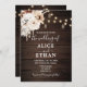 Voici notre Faire-part de mariage rustique enchanteur, le choix idéal pour votre célébration mariage de automne. Le design est agrémenté d'un décor de bois rustique magnifiquement illustré, évoquant le charme et la chaleur d'un cadre automnal. En haut de la carte, une étonnante aquarelle boho arrangement de fleurs aux couleurs neutres apaisantes est gracieusement présentée, illuminée par la douce lueur des lampes à cordes, ajoutant une touche de magie et de romance. L'invitation combine élégamment du texte dans une police serif classique avec un script moderne, en surlignant le titre "Le Mariage de" dans une police de script captivante. Cette invitation est une sélection idéale pour les couples qui cherchent à capturer l'essence d'un mariage de automne, mêlant charme rustique et sophistication moderne. Préparez-vous à votre journée spéciale avec une invitation qui non seulement annonce votre événement, mais reflète aussi la beauté et l'esprit unique de votre histoire d'amour.