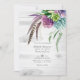 Invitation photo plante succulent tendance avec plumes bohème et calligraphie élégante personnalisable selon vos spécificités d'événement. Idéal pour un thème ou un mariage de jardin. Le code QR au verso dirige vers votre site mariage où les gens peuvent en savoir plus et rsvp.