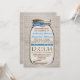 Jolie invitation au mariage campagnard rustique avec un pot de mason dessiné à la main et un arc de cercle bleu. L'arrière - plan burlap est un dessin imprimé sur le papier - pas un tissu burlap réel. Contactez-moi si vous avez besoin d'aide pour personnaliser ou pour avoir une demande de couleur personnalisée.