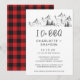 Invitation Rustique de BBQ de Bison de Wilderness pour les Mariés est idéale pour une fête sur le thème de la montagne. Notre événement inspiré de la montagne présente une illustration manuelle de montagne et de scène forestière avec un fond à carreaux de bison inspiré de cabane, parfait pour votre fête de fiançailles I do BBQ.