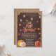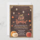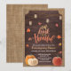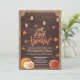 Invitation rustique de pendaison de crémaillère pour automne avec citrouilles, guirlande lumineuse, feuilles, bois et paillettons - Maison douce maison