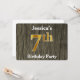 Cette conception d'invitation comporte le numéro ordinal "7ème" avec un aspect faux or. Il est également doté d'un nom personnalisé et d'un arrière - plan rustique en faux bois. Les détails de l'événement sur le dos peuvent être personnalisés. Il pourrait être utilisé pour les invitations à la fête du septième anniversaire de quelqu’un. [~Z0000016]