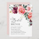Cette adorable invitation à la douche à brunch nuptiale présente des fleurs d'aquarelle aux tons bordeaux, roux et corail, accentuées de feuillage verdoyant et associées à un dossier rose doux. Éléments correspondants disponibles.