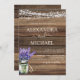 Rustic Farmhouse String Lights et Jar of Baby's Breath Wedding Invitations on Wood arrière - plan - comprend une belle et élégante typographie de script avec la ferme Country Farm House Sparkle moderne pour la célébration spéciale de mariage.