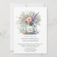 Ce faire-part de mariage rustique rayonne de l'élégance de la campagne avec son aquarelle douce illustrant un pot de maçon aux tons de fleurs sauvages rose, violet et crème, accentué par la verdure luxuriante. Le style peint à la main apporte une touche douce et romantique, tandis que le bocal de mason évoque un charme vintage et une chaleur d'accueil. Équilibré et aéré, le design est parfait pour une fête du vignoble ou du jardin, invitant les invités à une journée remplie d'amour, de nature et de simplicité sincère. Personnalisez le étiquette sur le bocal et le reste de l'invitation.
