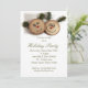 Noël au cabine ! Dazzle vos invités avant la fête avec ces invitations de vacances ou de fête de Noël entièrement personnalisables. Ce design présente deux personnes en bois adorables avec des oreilles de pin et des nez rouges. Idéal pour le thème rustique et champêtre très populaire. Fait un grand invitation pour une entreprise, une entreprise, une église, une paroisse, ou pour toute personne qui aime des vacances à la campagne!