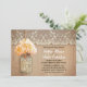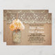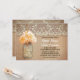 Joli faire-part de mariage rustique avec bocal de mason avec fleur d'hydrangée d'orange de pêche. Invitation parfait pour le mariage campagnard avec dentelle vintage et des accents en bois.