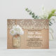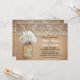 Joli faire-part de mariage rustique avec jarre de maçon à fleur d'hydrangée blanche. Invitation parfait pour le mariage campagnard avec dentelle vintage et des accents en bois.