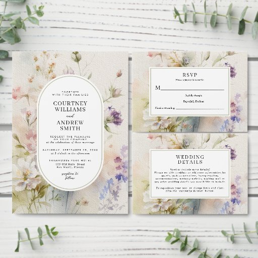 Invitation Rustique Retro Fleur sauvage d'aquarelle Mariage