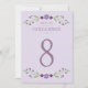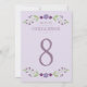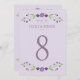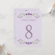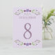 Les cartes de numéro de table Rustique chic mariage présentent un cadre floral symétrique de lavande, lilas, violet et prune violet avec des feuilles botaniques verts avec un look dessiné à la main qui encadrent le design.