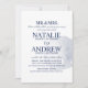 Elégant faire-part de mariage de design bleu marine avec style typographique pour un mariage élégant sur la plage ou un événement à thème dollar de sable.