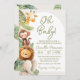 Accueillez votre petit bout et célébrez les futurs parents avec cette invitation chaleureuse mettant en vedette les animaux de la savane et de la jungle ainsi que le feuillage vert. C'est un design parfait pour votre douche à thème animal sauvage.