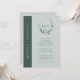 Typographie moderne Gras Emerald et Sage Green Monogram Wreath QR Code Faire-part de mariage... Notre faire-part de mariage "All in One" QR Code RSVP sauge et vert émeraude présente une typographie serif audacieuse combinée à un texte sans serif pour un faire-part de mariage monogrammé simple et tendance. La couronne de monogramme vert émeraude et les illustrations feuillues sont des botaniques peints à la main... donnant un look unique et élégant aux mariées modernes. Le verso de l'invitation contient à la fois un code QR qui peut être scanné par le destinataire ainsi que l'URL imprimée pour votre site Web mariage, permettant à vos invités de RSVP rapidement et facilement afin que vous puissiez plus facilement planifier les détails de votre réception. Cette faire-part de mariage de style minimaliste moderne, avant et arrière, a été conçue pour être à la mode, économisant du temps et économisant de l'arbre. Tous les exemples de texte peuvent être facilement révisés avec vos propres informations sur le modèle de personnalisation.