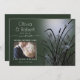 Rustic Nature Photo Save the Date - Votre photo avec ce thème vert sauge foncé, une douce lueur derrière un joli écran de cattails et d'herbes avec des libellules scintillants brillant dans la lueur - le dos est une couleur de coordination facile à customiser modèle - oeuvre originale © by WhimsicalArtwork™ for theBarefootBride ™. Cela fait partie d'une suite complète de papeterie mariage, ainsi que Baby shower, Anniversaire et Invitations de Christening. Pour toute question ou assistance, veuillez contacter le concepteur indy.designer@yahoo.com.