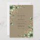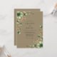 This design showcases a sophisticated palette of sage green and earthy tan, ideal for a polished seasonal event. Artistic watercolor green pumpkins are nestled among shimmering bronze-toned autumn foliage and delicate sprigs. This aesthetic radiates a warm, rustic atmosphere that perfectly captures the essence of a tranquil harvest theme.